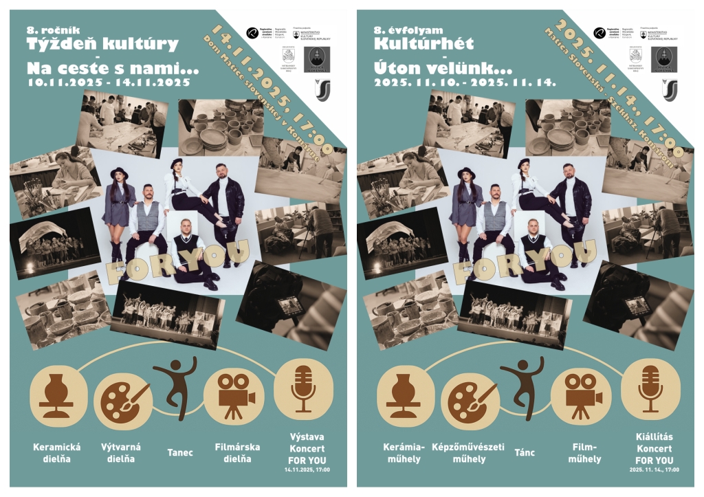 Komárno sa už po ôsmy raz stane centrom tvorivosti a ľudskej spolupatričnosti. V piatok 14. novembra 2025 o 17:00 hod. sa v Dome Matice slovenskej uskutoční slávnostné vyhodnotenie podujatia Týždeň kultúry – Na ceste s nami, ktoré každoročne spája ľudí prostredníctvom farieb, hudby, pohybu a priateľstva.
