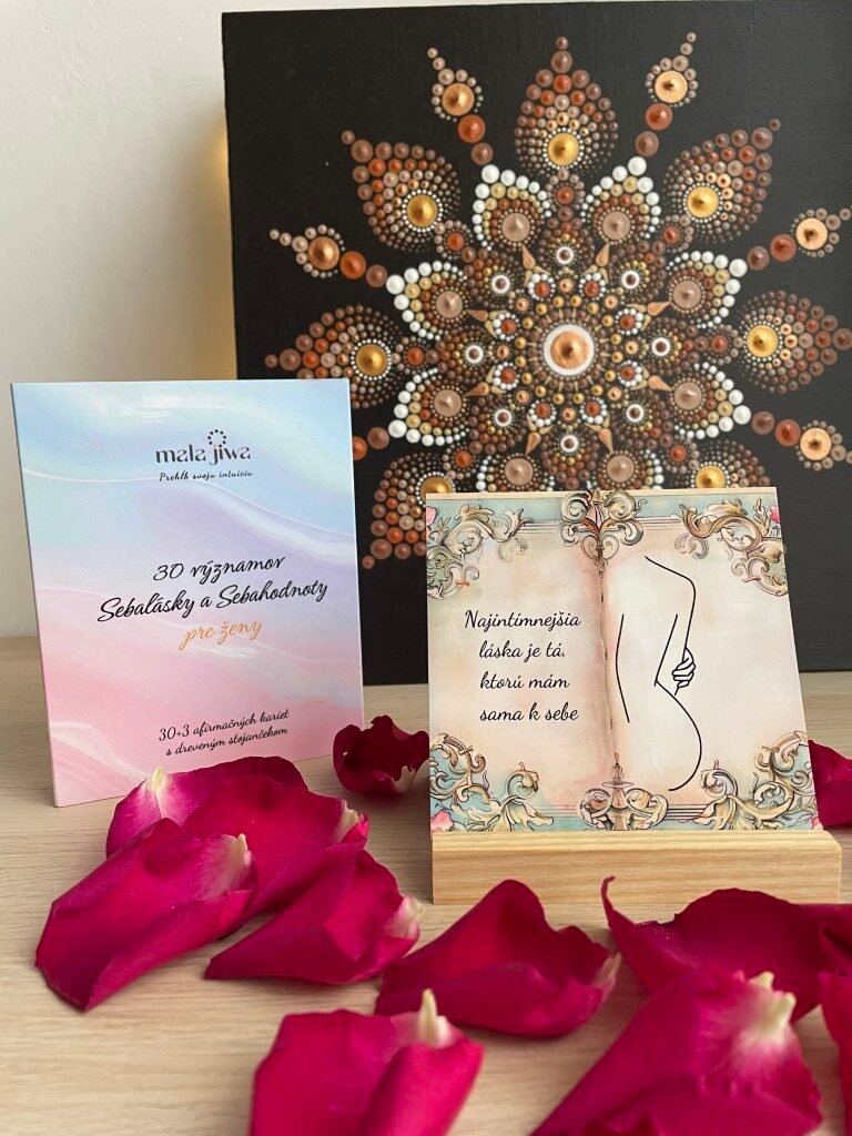 My sme sa podrobne zamerali práve na túto otázku a vytvorili 30+3 Významov Sebalásky a Sebahodnoty pre ženy. Afirmácie sú zamerané na to, čo vlastne znamená sebaláska a sebahodnota. Funguje to tak, že si každý deň vyberiete jednu kartu, ktorú vložíte do priloženého stojančeka, tam kde sa počas dňa pohybujete. Pravidelným pripomínaním a resp. prijímaním pozitívnych správ, hudby, či výrokov sme jednoducho lepšie naladení. Afirmačné karty vám však pripomínajú aby ste sa zamerali na seba, na svoje potreby, ktoré vychádzajú z našej podstaty.