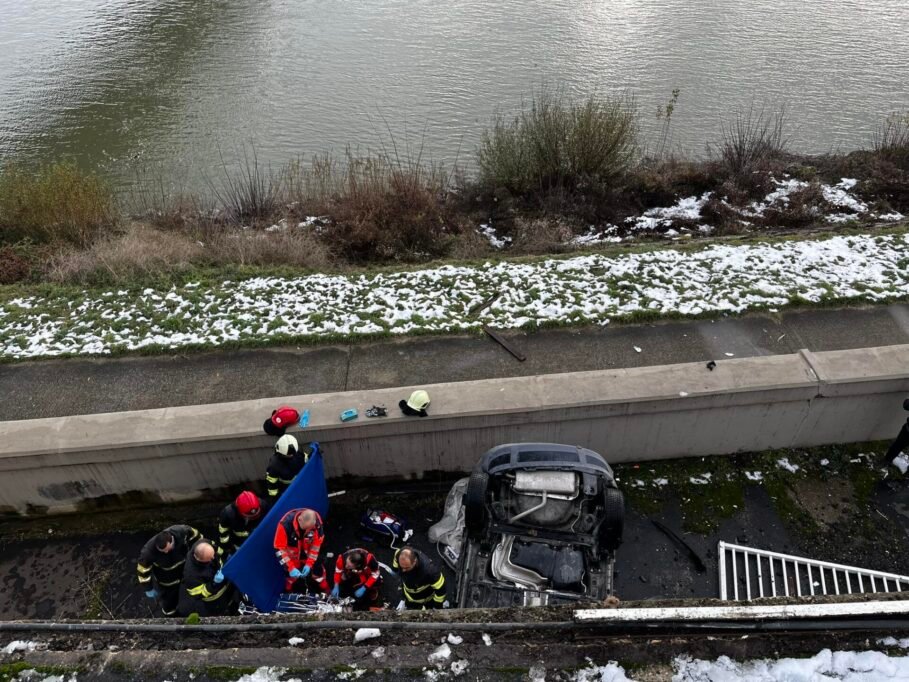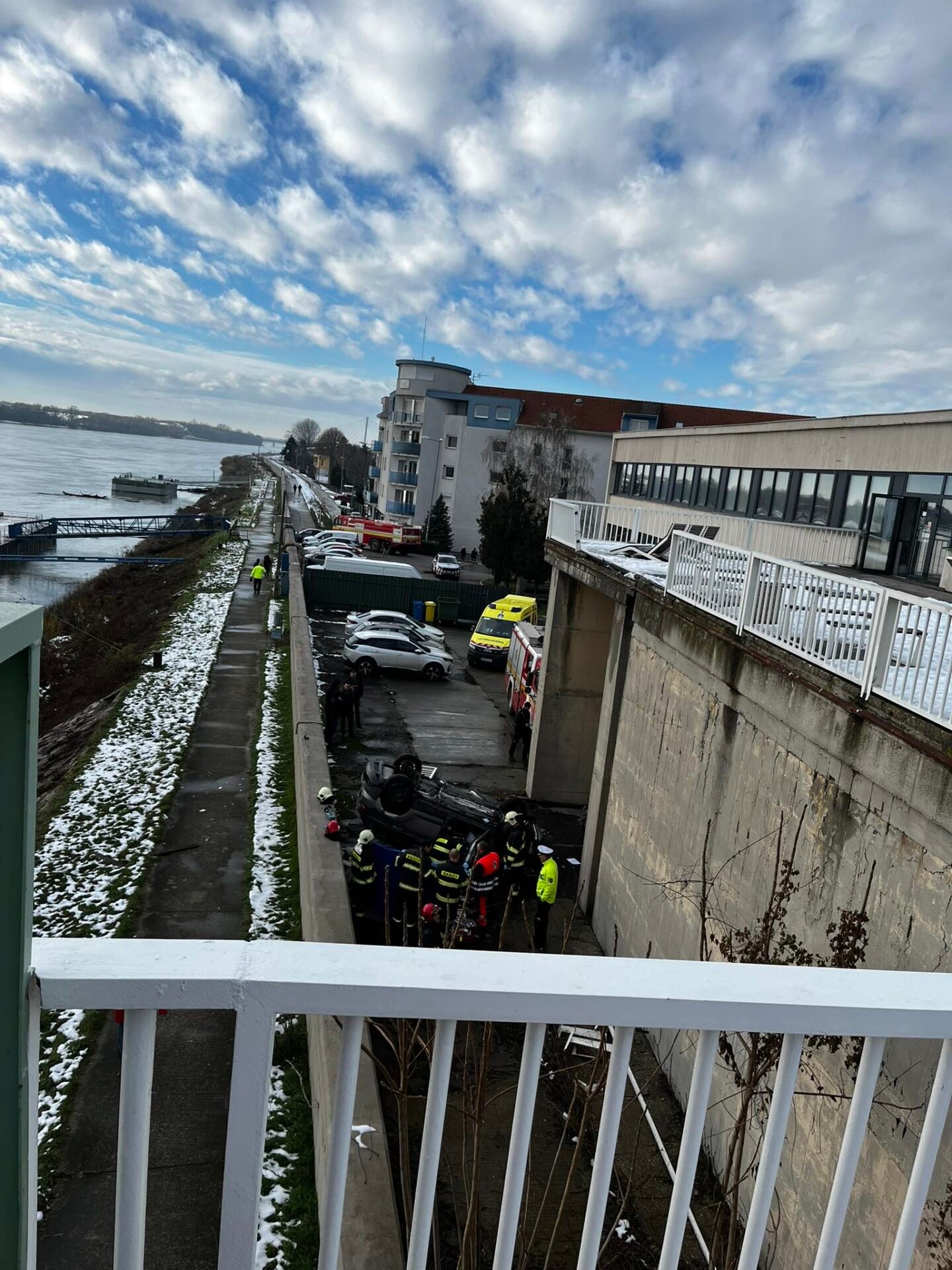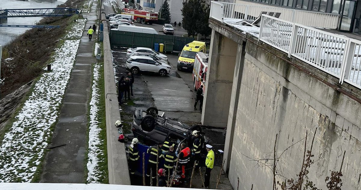 AKTUÁLNE: Vozidlo prerazilo zábradlie. Spadlo z výšky pri zmenárni smerom na Maďarsko