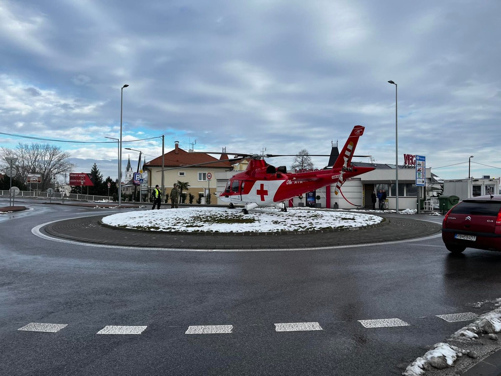 Z doteraz nezistených príčin dnes (pondelok 11.12.) vozidlo prerazilo zábradlie pri zmenárni smerom na Maďarskú republiku. Vozidlo pristálo na streche, na mieste zasahujú hasičské a záchranné jednotky.