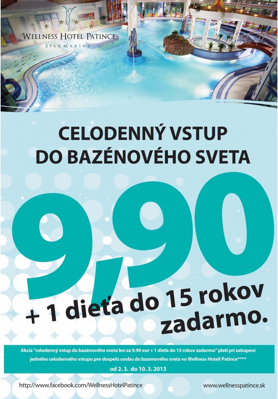 Celodenný vstup do Bazénového sveta v Patinciach pre dieťa do 15 rokov zadarmo!