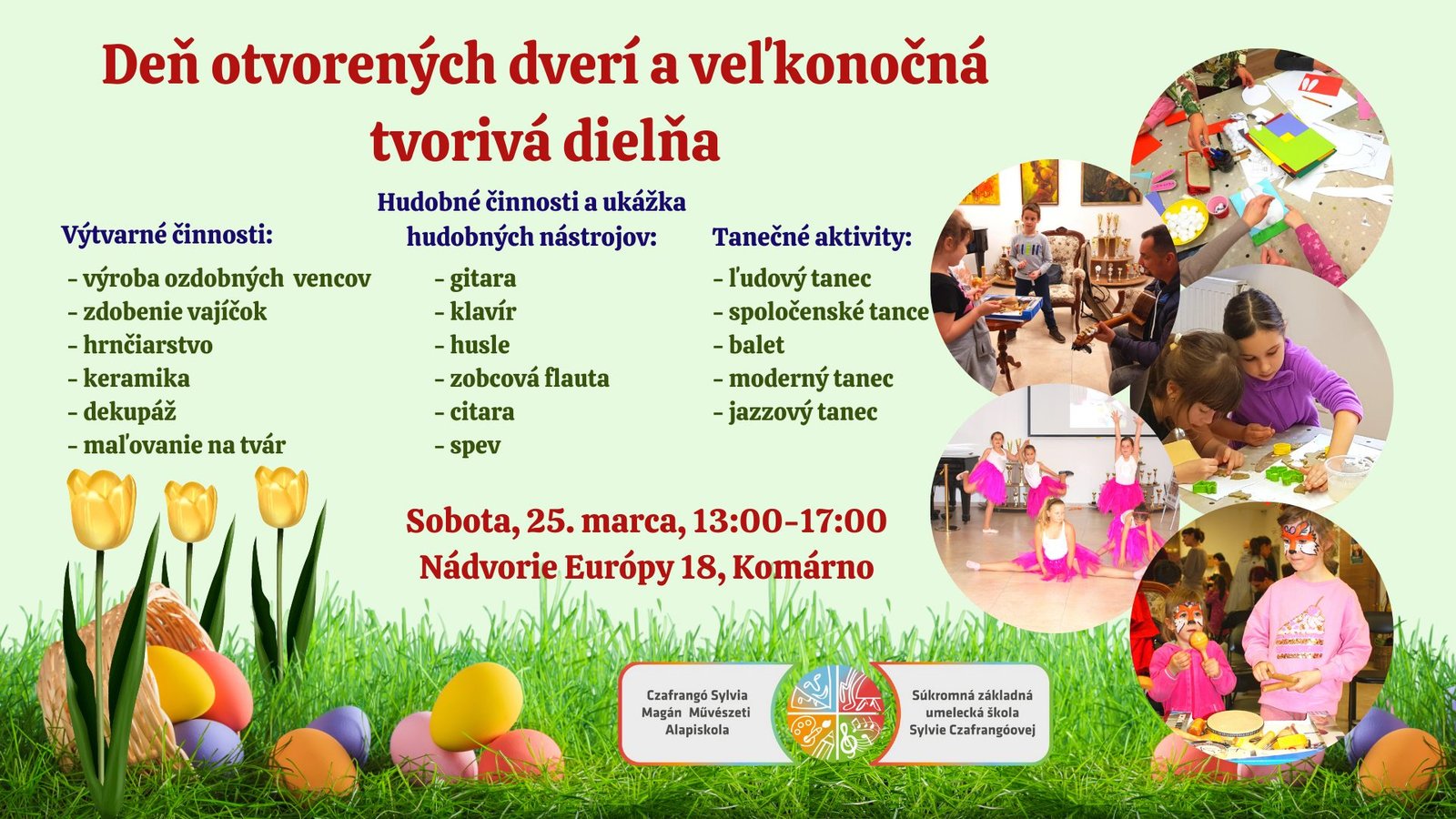 Pozývame všetkých záujemcov na Deň otvorených dverí a veľkonočnú tvorivú dielňu Súkromnej základnej umeleckej školy Sylvie Czafrangóovej v Komárne.