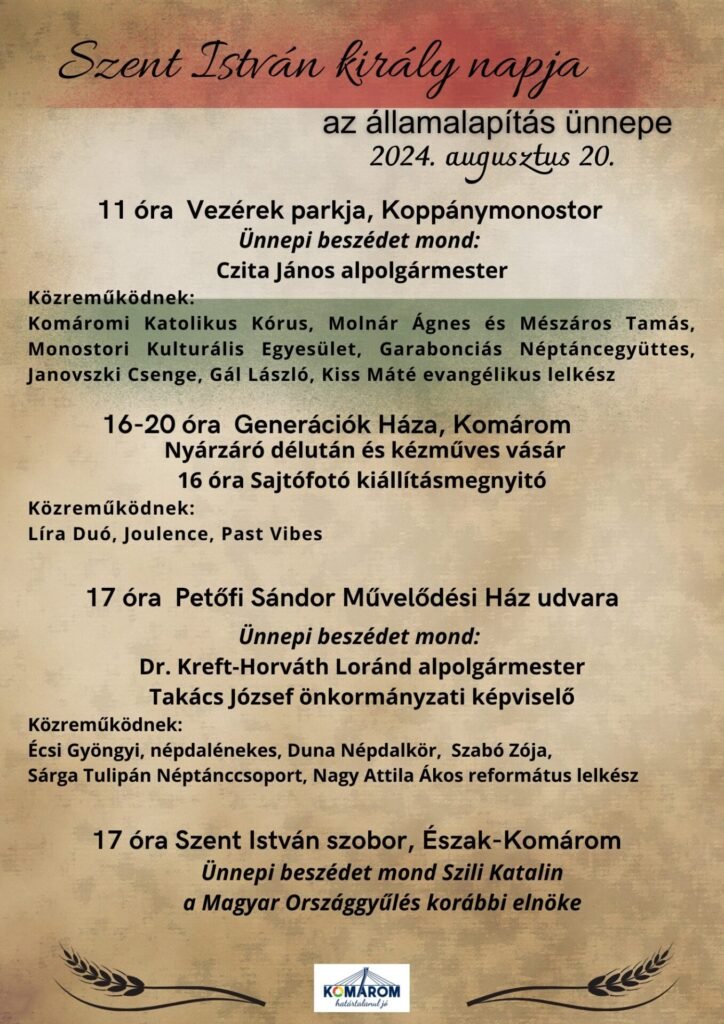 Okrem toho, samozrejme, svätého Štefana si v maďarskom Komárome pripomínajú na viacerých miestach, podrobný program nájdete na plagáte: