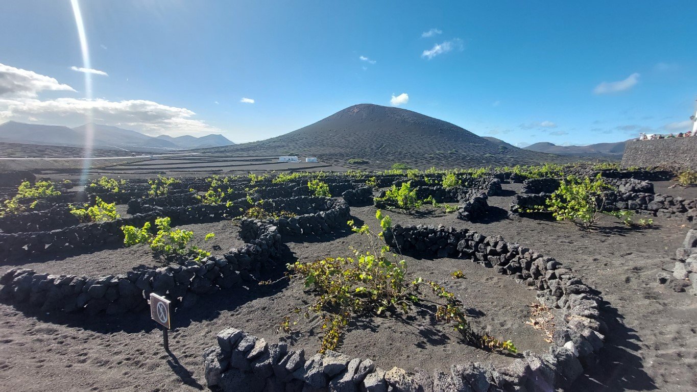 Cesta na Kanárske ostrovy však neponúkla iba jednu destináciu. Z južnej časti Fuerteventury sme sa presunuli na sever iba za dve hodinky. Potom pol hodinku kompou nám trvala cesta na ostrov, ktorý sa volá **Lanzarotte**. A verte mi, že cesta tam stála za to. Ostrov je známy svojou aktívnou sopkou a národným parkom Timanfaya. Zaujal nás svojou jedinečnosťou, kde boli všetky domy natreté na bielo s výnimkou zelených dverí a okien. Tie vytvárajú kontrast, ktorý sa vám jednoznačne vryje do pamäti. Za takúto unikátnu architektúru môžeme vďačiť umelcovi menom Cesar Marinque, ktorý zaviedol podmienky vzhľadu domov, jeho umelecké sochy, ktoré sa hýbu vo vetre a zdobia viaceré kruhové objazdy, a na ostrove je prístupných viacero jeho “jaskýň” – v skutočnosti ozajstných lávových jaskýň, v ktorých si vybudoval veľmi komfortné priestory, kde sa s priateľmi rád stretával. Okrem toho sú medzi turistami veľmi obľúbené pieskové pláže, zelené jazero El Golfo. Jedinečný spôsob pestovania hrozna a vynikajúce vína môžete spoznať a ochutnať vo vinárstve La Geria v srdci ostrova a Mirador del Rio na severe ostrova vám poskytne jedinečný výhľad na okolité vulkány, aj nádherný ostrov La Graciosa.