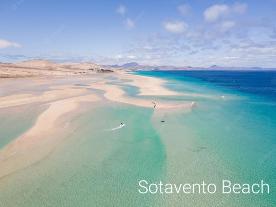 - Sotavento – so svetlým pieskom a plytkými lagúnami, obľúbená nadšencami Kite surfingu,