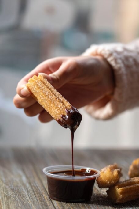 - Sladké churros: Tieto španielske dezerty sú chrumkavé zvonku a jemne mäkké vnútri. Sú výnimočné svojim tvarom, veľkosti a chuťou. Tradične sú podávané s horúcou čokoládou na namáčanie.