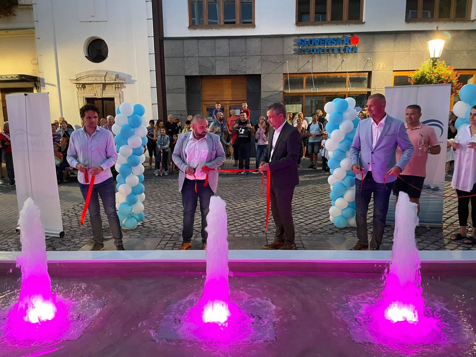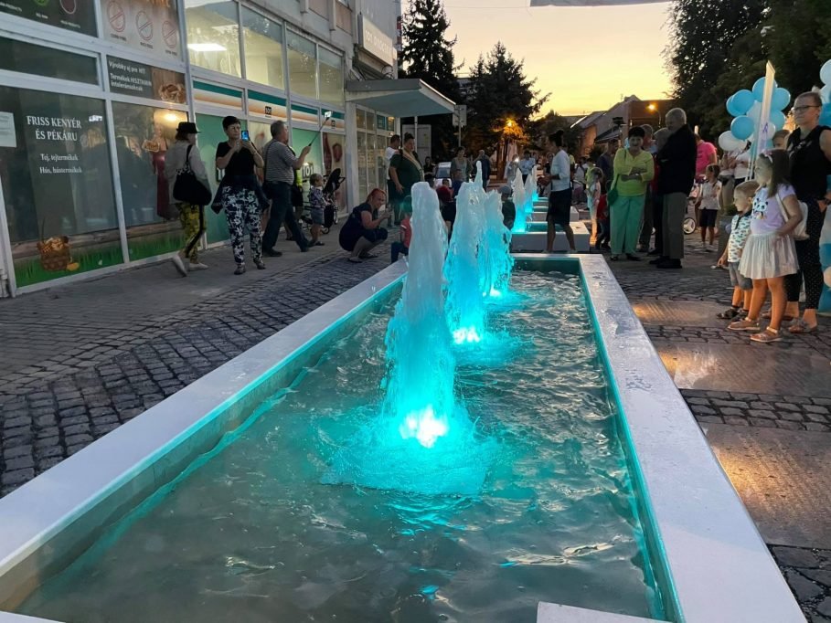 Vo štvrtok večer vodnú atrakciu na Palatínovej ulici slávnostne odovzdal do užívania generálny riaditeľ spoločnosti KOMVaK Patrik Ruman, primátor Béla Keszegh, zástupca spoločnosti Aqua Slovakia, ktorá prestavbu realizovala, Ján Beseda a projektant rekonštrukcie architekt Krisztián Csémy.