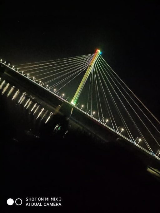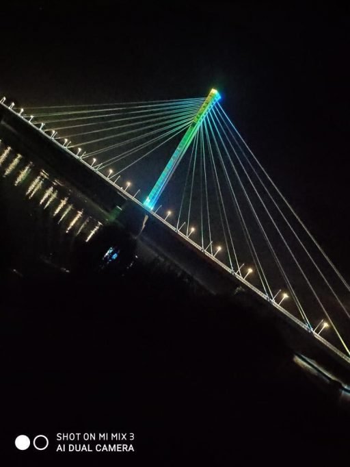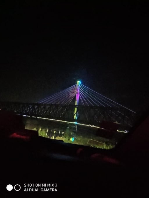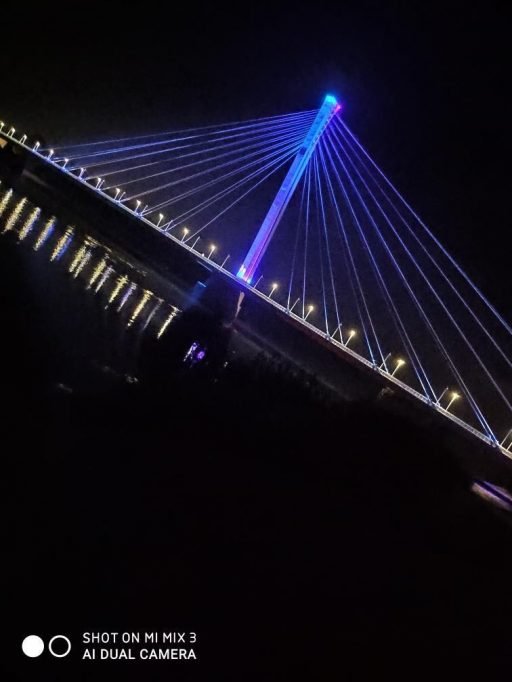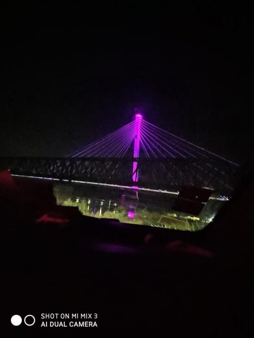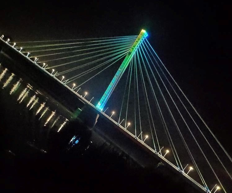 Cez víkend sa Komárňanom naskytol jedinečný pohľad. Nový most, ktorý spája maďarský Komárom a Komárno, sa obliekol do farieb.