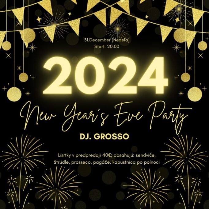 Je čas urobiť v Komárne poriadnu silvestrovskú párty! Rozlúčka s koncom roka sa bude niesť v znamení zlatej farby, tradičných pokrmov a dokonalej párty hudby v sprievode DJ. Grosso. Na silvestrovskej párty roka v Coool BARe budú dostupné sendviče, zákusky, pagáče, prosseco a po polnoci do portfólia pribudne aj tradičná kapustnica.