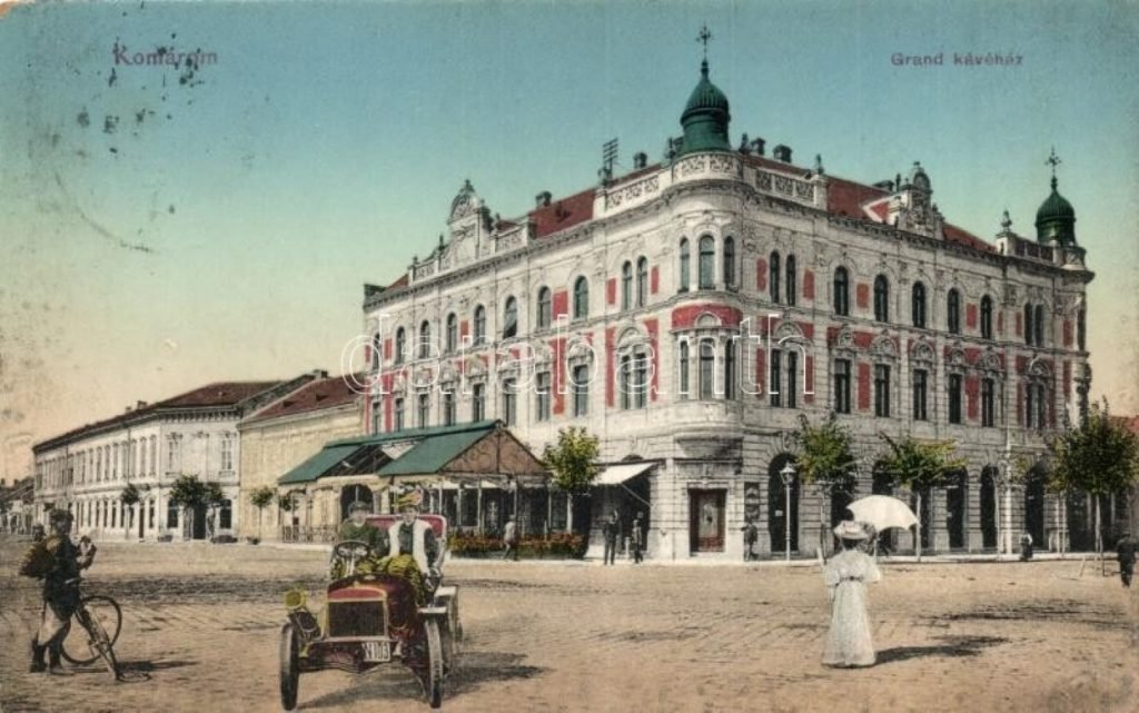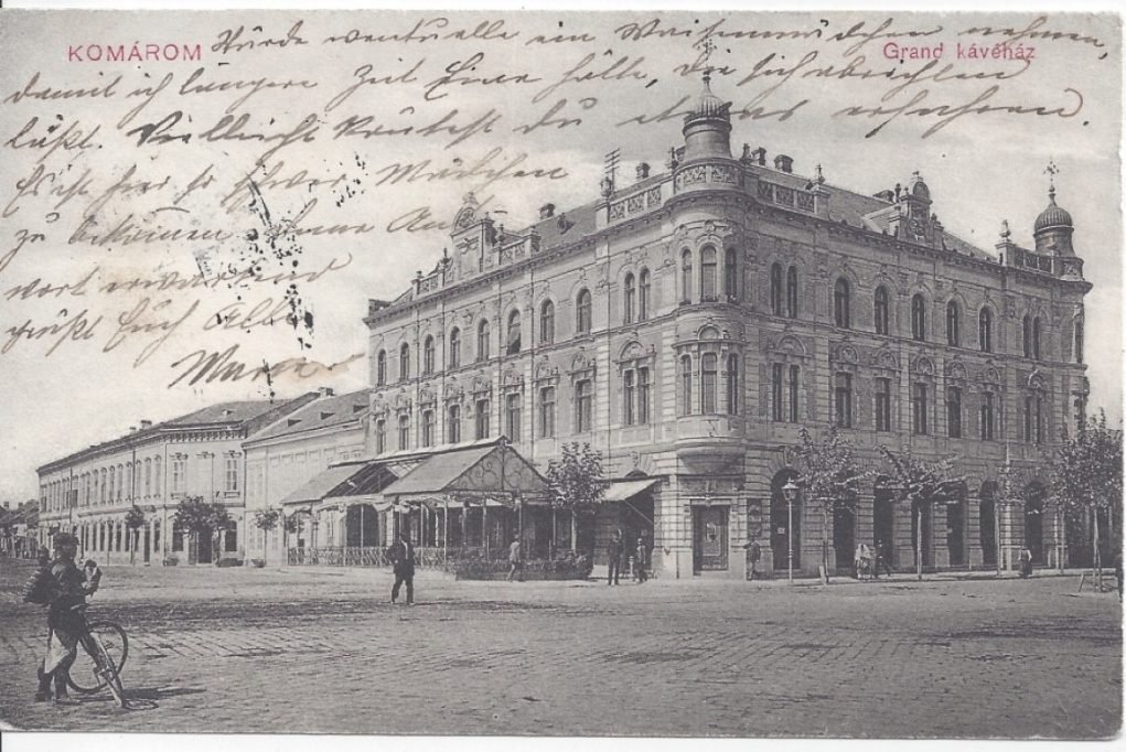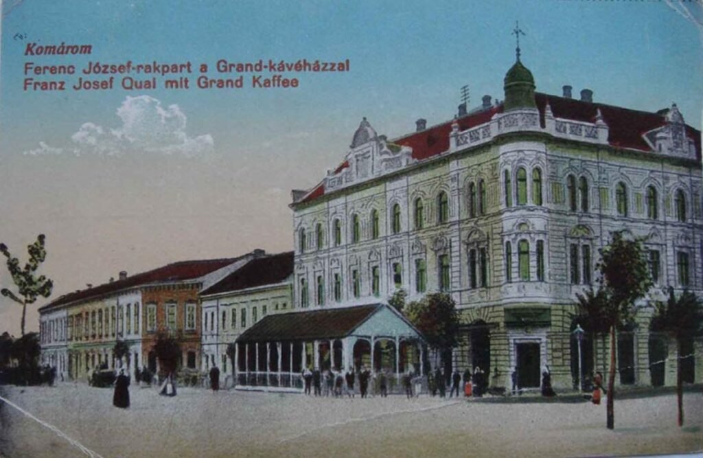Poďakovať sa za ňu mohli ambicióznemu a bohatému komárňanskému podnikateľovi menom Adolf Grünfeld, ktorý stál za stavebným skvostom. Či túto stavbu videl ako kaviareň od samého začiatku, bohužiaľ, nik netuší. No na prvej čiernobielej pohľadnici, ktorá novostavbu zachytáva, sa našiel text: Grünfeldov nájomný palác. Neskoršie pohľadnice následne zobrazovali budovu ako Grand Café a hotel.