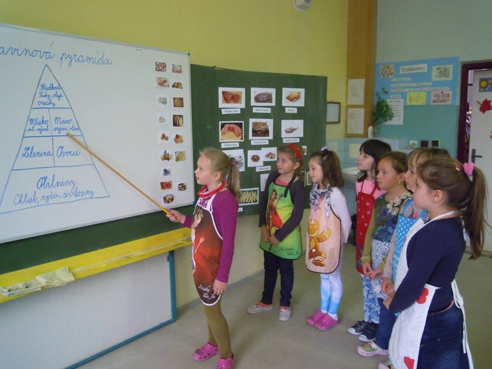 - Pondelok: Chlieb, pečivo, obilniny, ryža, cestoviny, zemiaky – prečo tvoria základňu potravinovej pyramídy. Žiaci pozorovali a následne opisovali namáhavú cestu zrodenia chleba, vysvetľovali jej časovú postupnosť. Vďaka rôznym činnostiam spoznali bližšie prácu pekárov. Dnes vedia význam chleba v našom každodennom živote patrične oceniť.