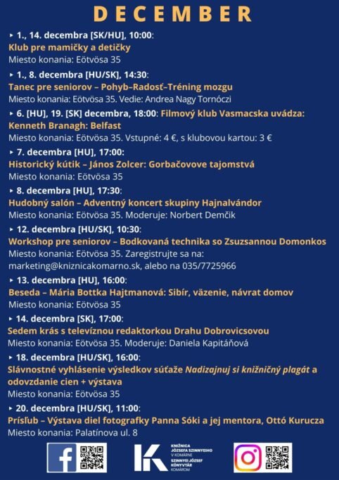 Knižnica Józsefa Szinnyeiho v Komárne ponúka pestrý program na december