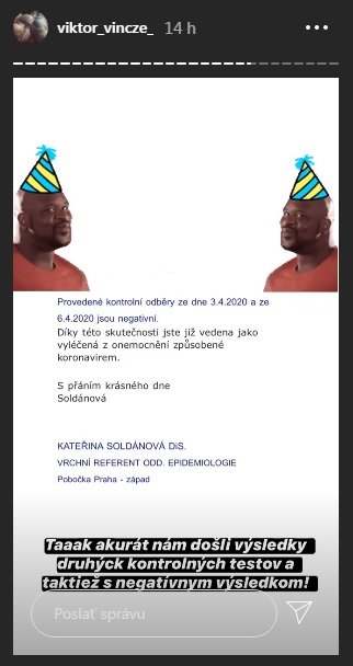 Včera Viktor informoval na svojom Instagrame o potvrdení v poradí druhých negatívnych testov. To znamená, že dvojica prekonala koronavírus. Viac si môžete prečítať a vypočuť na Viktorovom Instagrame.