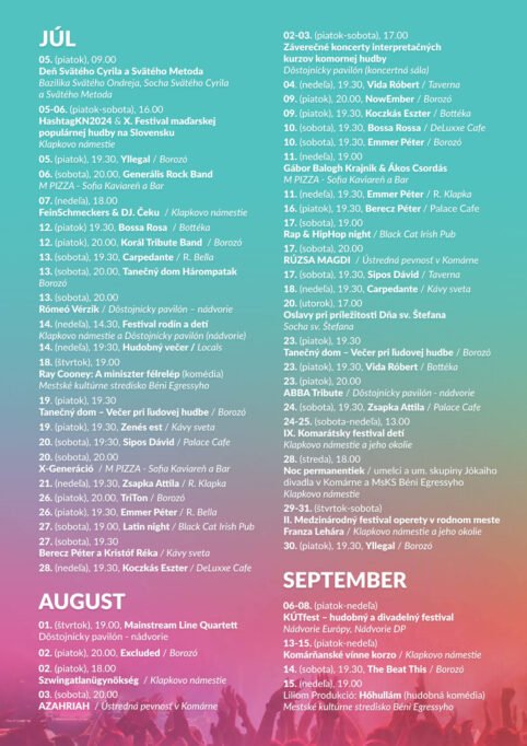 Komárňania sa môžu tešiť na bohaté kultúrne leto