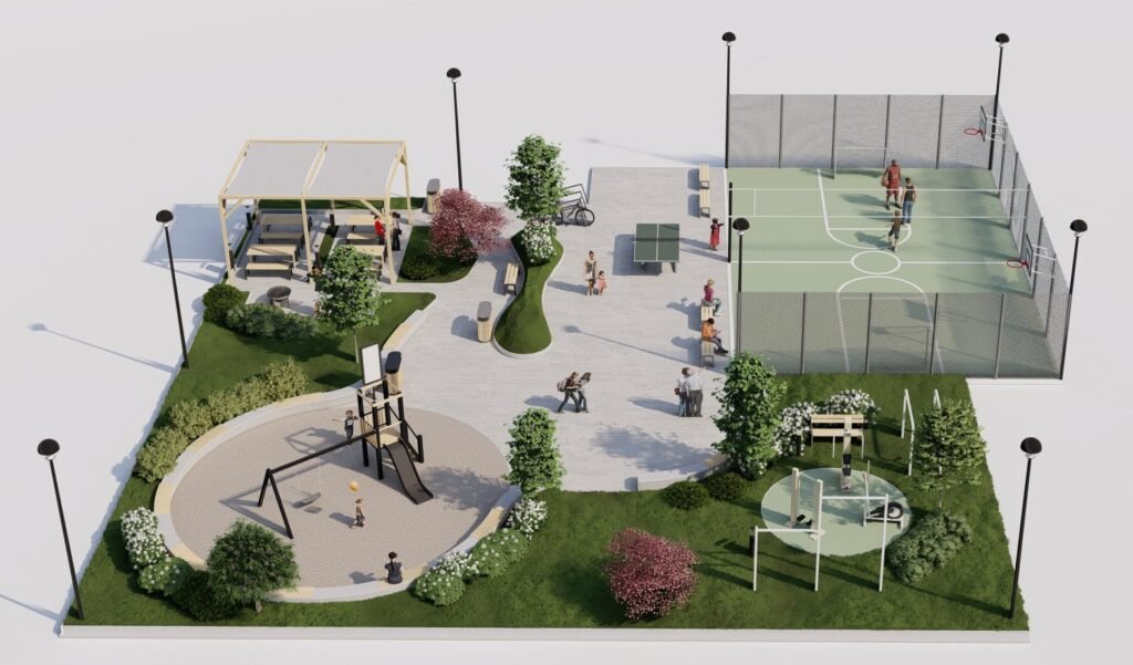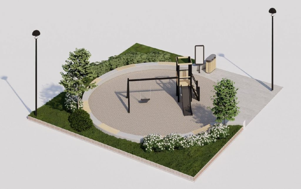 Tento modul má rozmer 12×12 m a bude slúžiť ako hracia plocha pre najmenšie deti. V zeleni, obklopené možnosťou na sedenie, bude vsadené detské ihrisko so šmykľavkou a hojdačkou.
