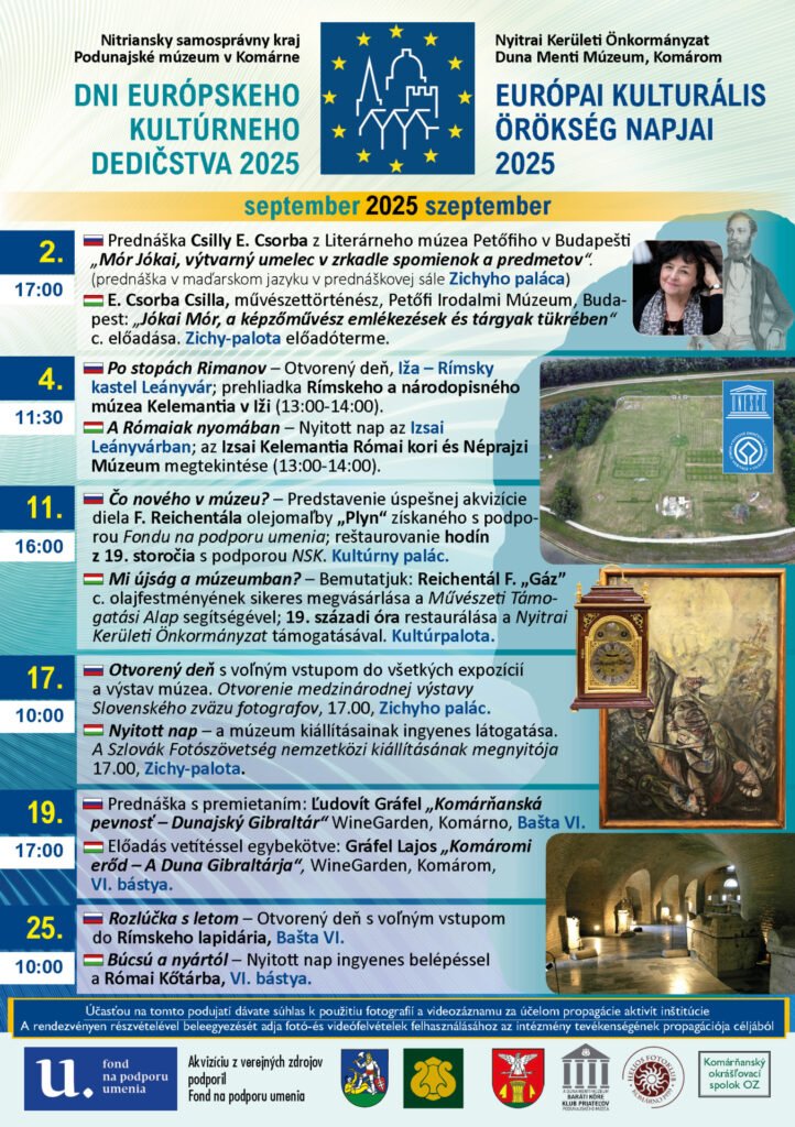 Nitriansky samosprávny kraj a Podunajské múzeum v Komárne pripravili aj v tomto roku sériu podujatí pri príležitosti Dní európskeho kultúrneho dedičstva 2025. Bohatý program sa uskutoční počas septembra a ponúkne prednášky, výstavy, otvorené dni i komentované prehliadky.