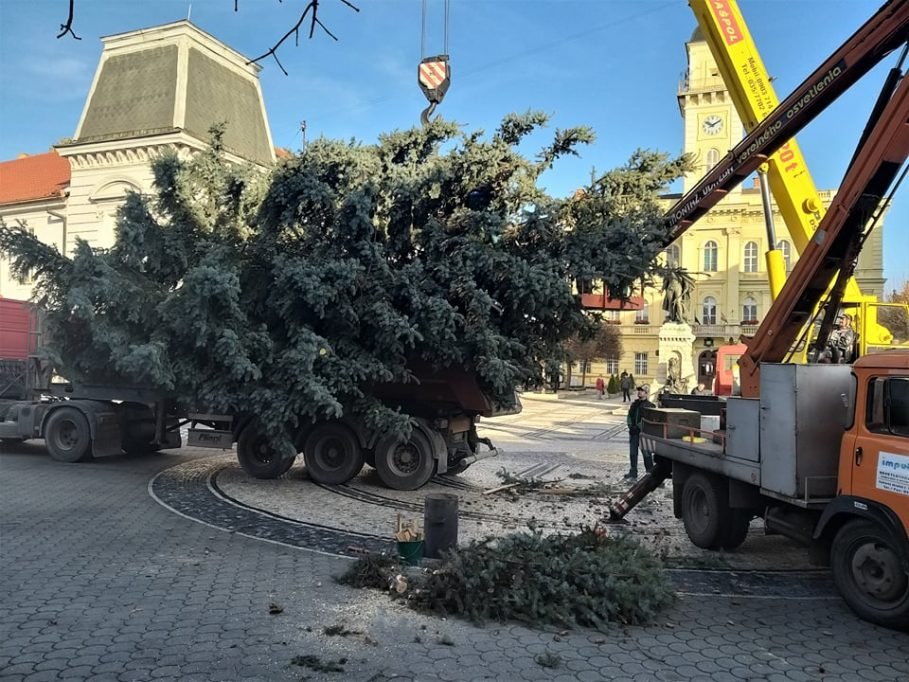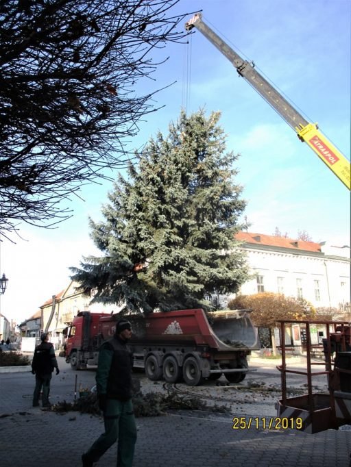 Vyše 12 metrový strom je od darcu Geri Door s.r.o. z Komárna. Vyzdobenie stromu je naplánované na tento týždeň.
