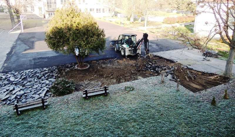 Terénne práce prebiehali od októbra do decembra minulého roku a to rozbitím poškodeného betónového povrchu, odvozom odpadového materiálu, ktorý sa nahradil kvalitnou zeminou.
