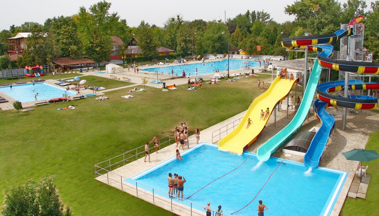 Najjužnejšie kúpalisko na Slovensku ponúka šesť bazénov a tri rôzne šmykľavky. Prvou bola 90 metrov dlhá a 10 metrov vysoká Anaconda, vhodná pre dobrodruhov. Pre milovníkov adrenalínu pribudla dráha Kamikaze, ktorá je vysoká 6,5 metra a napokon aj 2,5 metra široká super šmykľavka, ktorú majú v obľube najme rodiny s deťmi.
