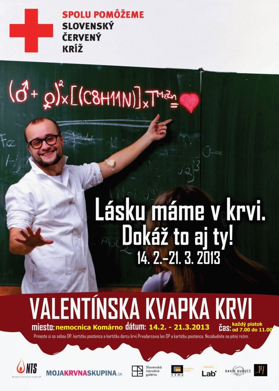 Slovenský Červený kríž opäť pripravil celoslovenskú kampaň Valentínska kvapka krvi. Začína presne na Valentína a potrvá do prvého jarného dňa – 21. marca. Heslom tohtoročnej kampane je Lásku máme v krvi. Dokáž to aj ty!