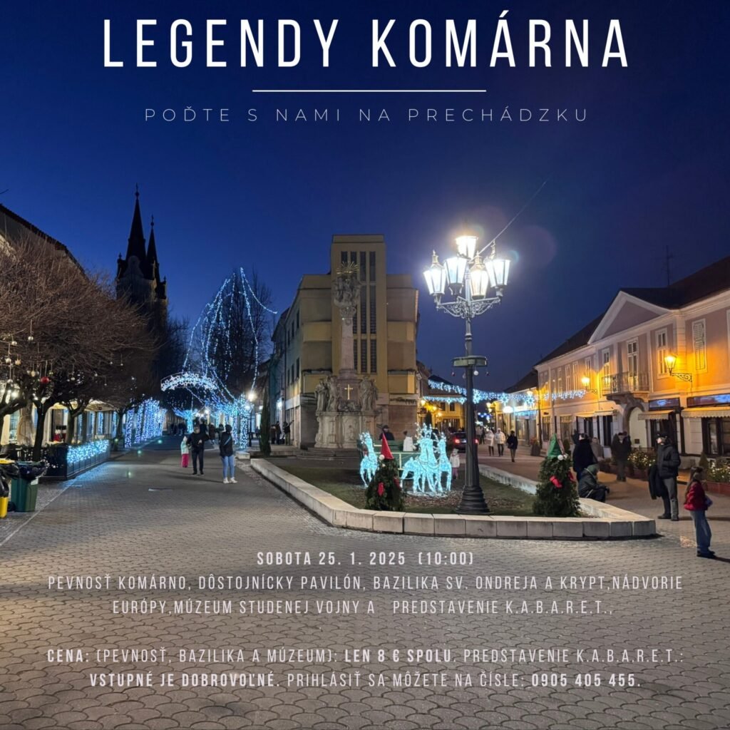Ak chcete zažiť túto výnimočnú sobotu plnú histórie a príbehov, môžete sa prihlásiť na telefónnom čísle 0905 405 455. Legendy Komárna vás prevedú nielen známymi miestami, ale aj neobjavenými pokladmi tohto jedinečného mesta.