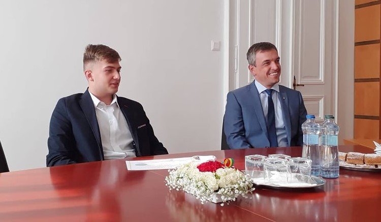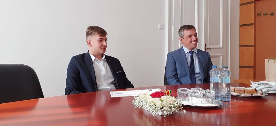 Pri tejto príležitosti úspešného študenta privítalo na Mestskom úrade v Komárne vedenie mesta – primátor Béla Keszegh, viceprimátor Ondrej Gajdáč a vedúci OŠKaŠ János Bajkai , ktorí mu odovzdali ocenenie a zablahoželali k tomuto skvelému úspechu.
