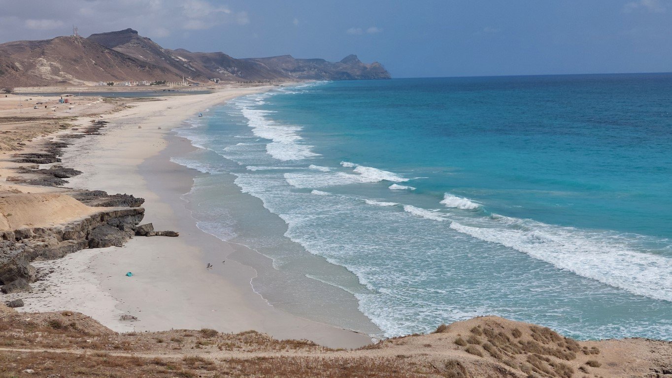 Mojím ďalším cieľom bola najkrajšia pláž v Ománe, Fazayah. Aj napriek zamračenému počasiu sa mi naskytol dychberúci pohľad na tyrkysové more obmývajúce biele pláže v objatí drsných skalnatých pohorí. Nachádza sa na východnom pobreží Ománu v provincii Ash Sharqiyah. Je to jedna z najkrajších pláží v krajine s jemným bielym pieskom a tyrkysovým morom. Je ideálna na plávanie, slnenie a pikniky.