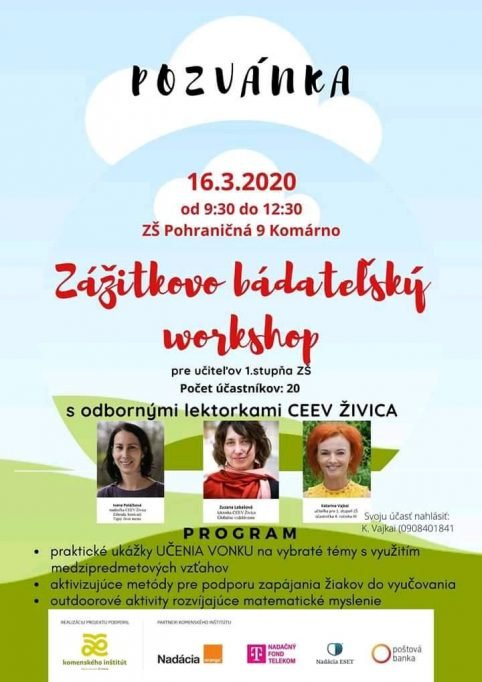 Milí učitelia, pozývame Vás na workshop s ukážkami outdoorového učenia so skúsenými lektorkami dňa 16.3. 2020 na Základnej škole na Ulici pohraničnej.