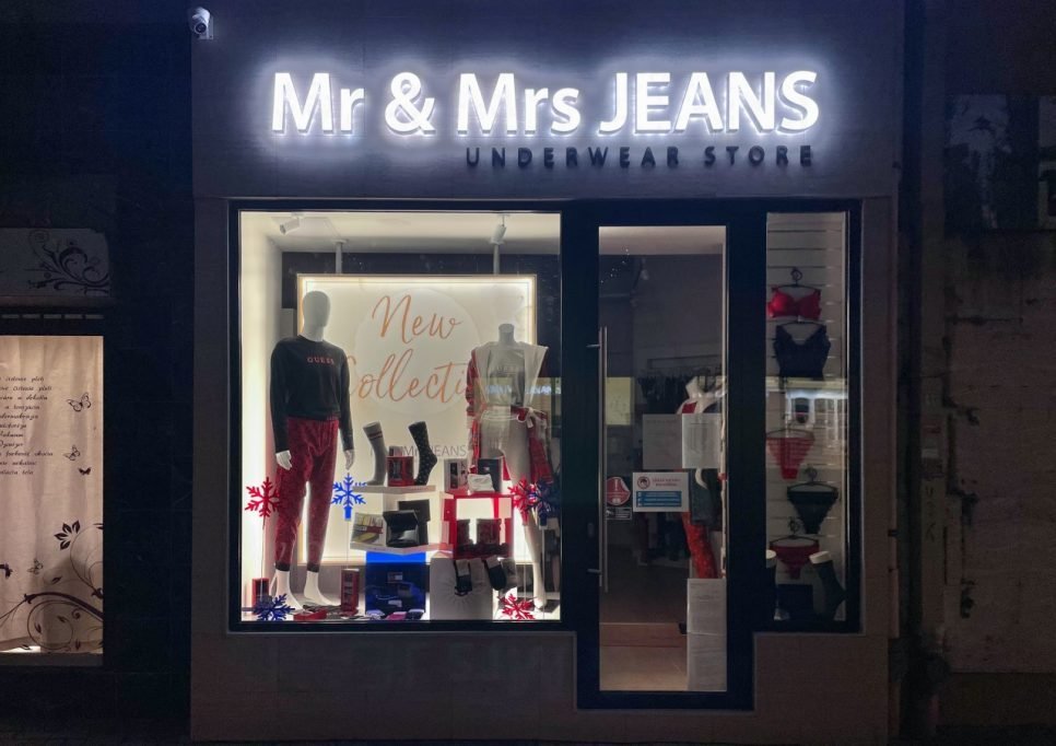 Mr & Mrs Jeans Underwear Store vznikla ako sesterská predajňa obchodu Mr & Mrs Jeans. Tá ponúka už od roku 2005 rifle prémiovej kvality a tak sa predajňa stala veľmi obľúbenou medzi miestnymi. Toto sa jej podarilo aj vďaka svojej širokej ponuke jedinečných kúskov, ktoré sú najčastejšie v podobe ťažko dostupných exkluzívnych svetových značiek za dostupné ceny. Na rovnakej filozofii je vybudovaná aj predajňa Mr & Mrs Jeans Underwear Store, ktorá sa špecializuje na predaj spodnej bielizne a tak víta všetkých, ktorým nie je ľahostajné, čo majú na sebe pod oblečením.