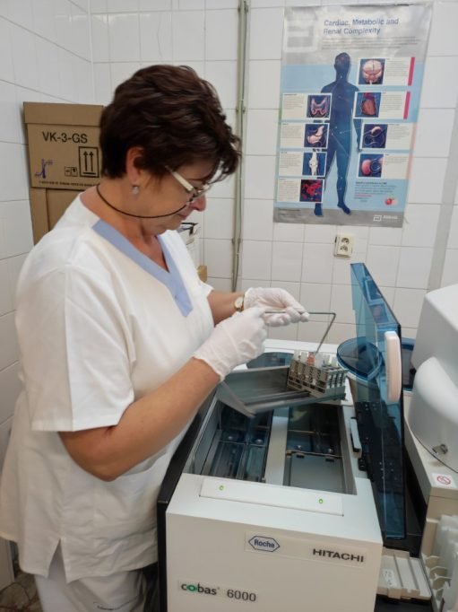 ,,Všetky uvedené vyšetrenia prevádzame každý deň. Urgentné vyšetrenia sú hotové do 1 hodiny, ostatné vyšetrenia do 2-3 hodín. Za rok 2021 bolo realizovaných 1.899.849 vyšetrení spolu s kontrolami a kalibráciami. Cez covidové obdobie sme v roku 2021 vyšetrili denne až 80 vyšetrení acidobázickej rovnováhy. Portfólio našich vyšetrení zahŕňa až 120 metód,“ hovorí vedúca laborantka OKB Zuzana Dóczeová.
