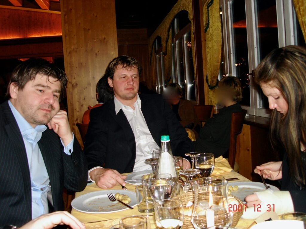 Na fotografii sú Kristián Kádár, Lajos Sátor a Judit Csörgő (Sátorova partnerka) na Silvestra 2007 v Taliansku.