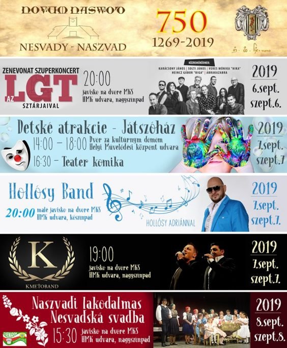 V nedeľu v ranných hodinách bude v športovej hale prebiehať hádzanársky turnaj a v poobedných hodinách to bude zas majstrovský futbalový zápas na futbalovom ihrisku. Na dvore MKS si návštevníci môžu pozrieť aj predstavenie s názvom Nesvadská svadba.