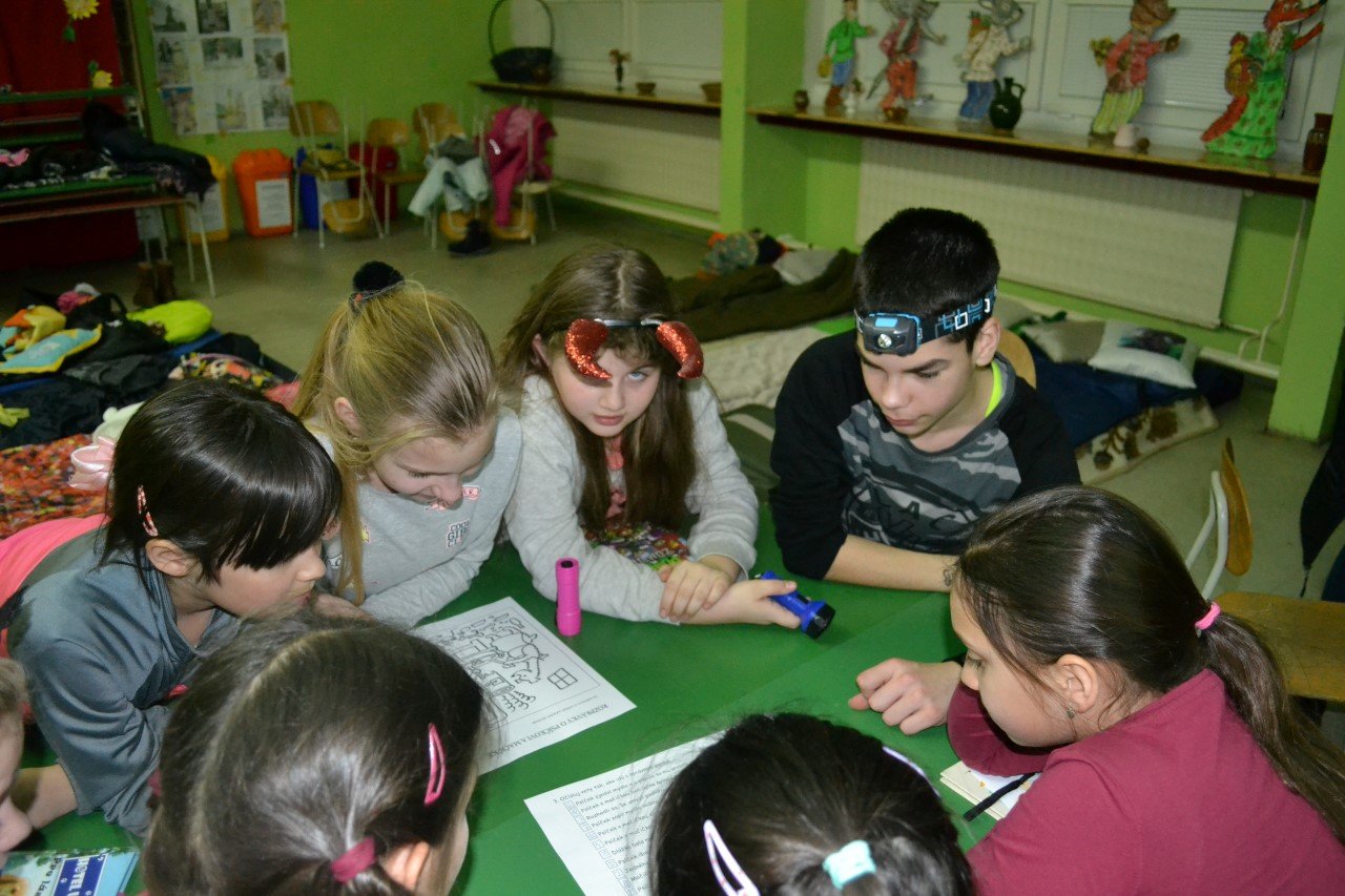 Veľká pátracia akcia, pri ktorej každý tím hľadal po škole skryté obálky a v nich ukryté tie najkrajšie výroky o knihách bola skúškou tímovej spolupráce, pomoci a odvahy, lebo sa po škole pohybovali v tme, len s pomocou bateriek.