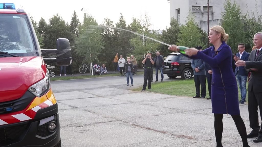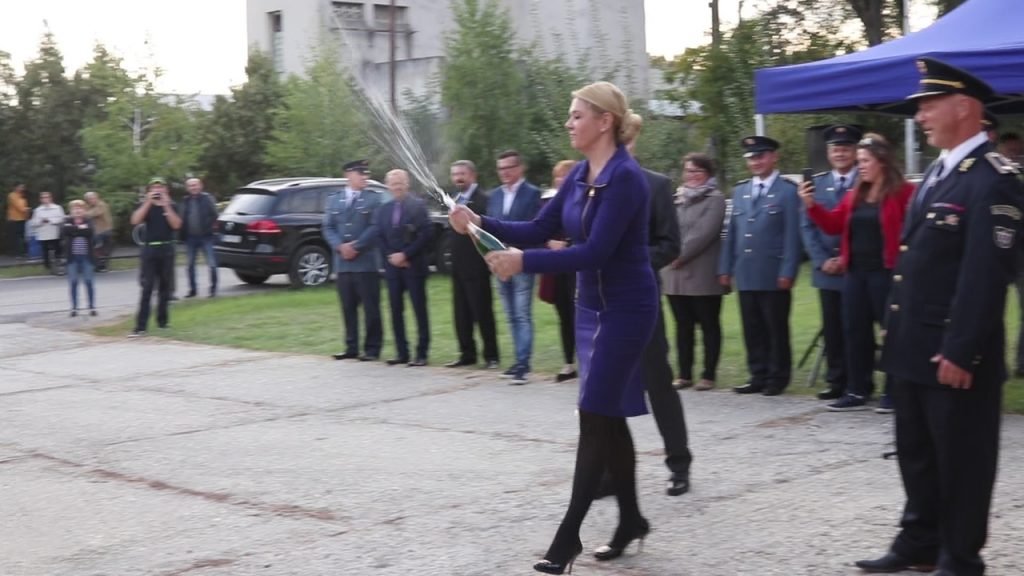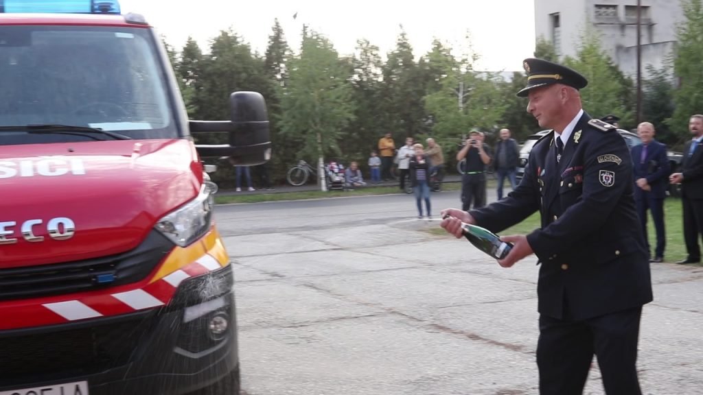 Pani ministerka s pánom primátorom postriekali hasičské auto šampanským, ktoré od tej chvíle prevzali do rúk hasiči, ale aj prítomné detí. Zaželajme našim hasičom čo najmenej výjazdov k haseniu požiarov a čo najviac bezpečných kilometrov. Všetkým im patrí jedno veľké ĎAKUJEM!
