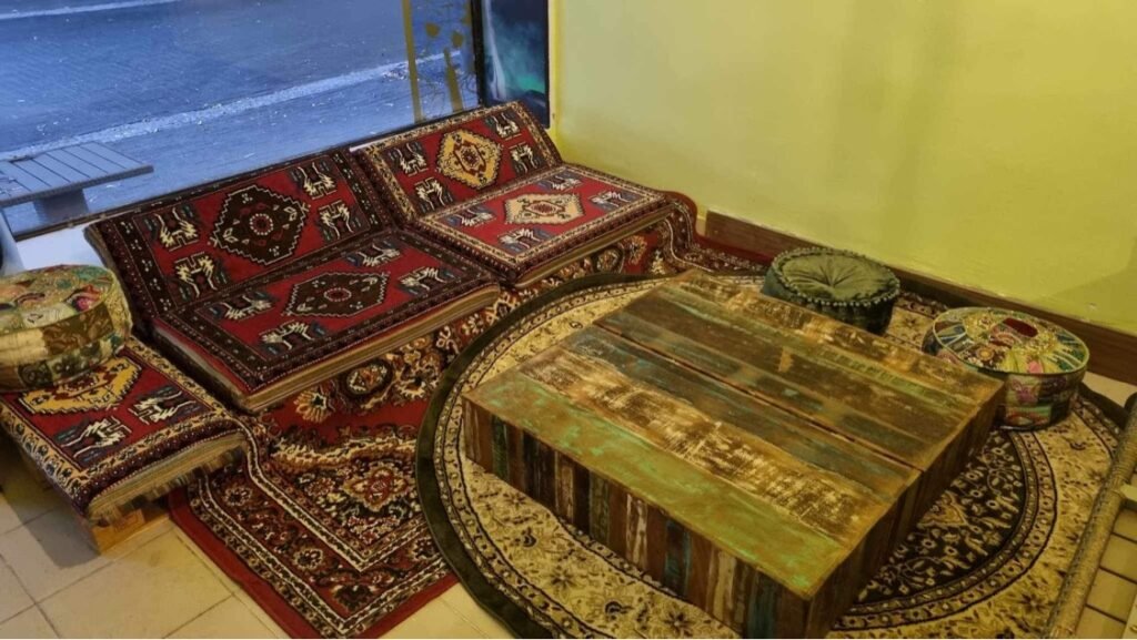 Vplyv Turecka, Tuniska a Egyptu je badateľný hneď pri príchode do interiéru. Orientom inšpirovaný nábytok sa nachádza v každej z miestností, bar sa nachádza v bývalej predajni so svadobným oblečením. O doplnenie atmosféry sa onedlho postará grafity, ktoré obohatí steny. Farebné scenérie, perzské koberce a mäkučké vankúše sa postarajú o letenku na ďaleký východ.