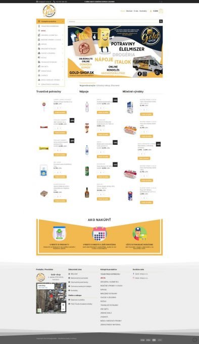V ponuke internetového obchodu Gold-shop nájdete veľké množstvo najžiadanejšieho a najobľúbenejšieho tovaru, či už ide o mliečne výrobky, mäso, pečivo, drogériu alebo alkoholické a nealkoholické nápoje. Sortiment ovocia a zeleniny pochádza prevažne od lokálnych pestovateľov a okrem pravidelných zliav sa v budúcnosti výber rozšíri o nové produkty a exkluzívny tovar, vrátane prémiových mäsiek na pečenie.