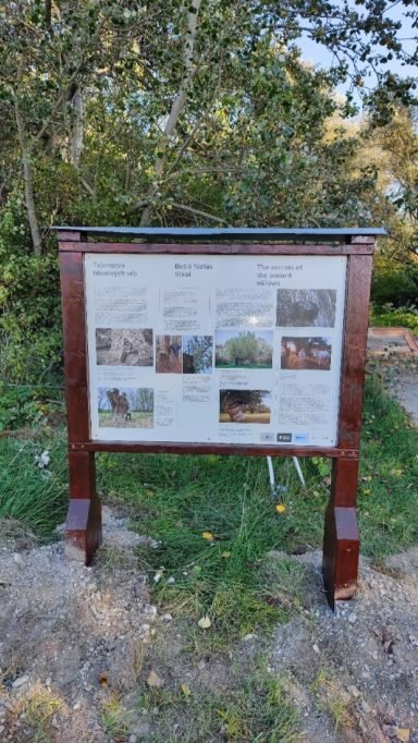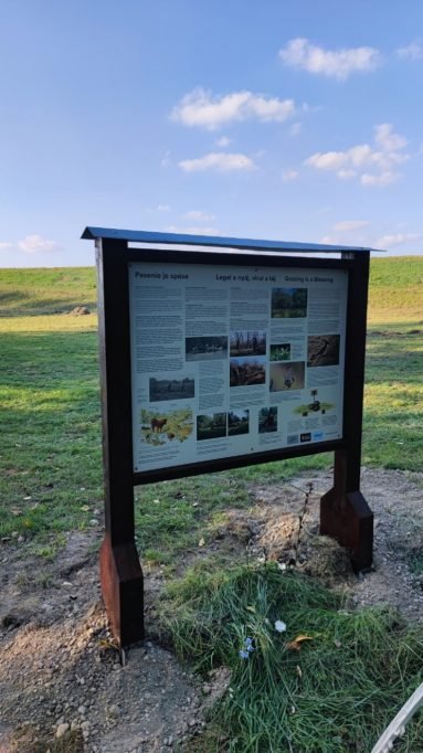 Obojstranný panel informuje návštevníkov o histórii územia, význame citlivej pastvy a tajomstvách hlavových vŕb.
