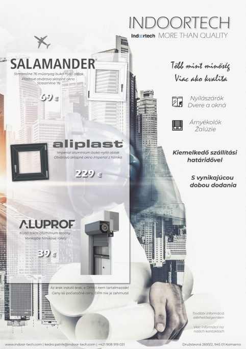 Výber správnych okenných a dverových systémov je kľúčovým faktorom pri stavbe domov alebo kancelárskych priestorov. Okná a dvere sú často prvým kontaktným miestom s novými zákazníkmi alebo hosťami. Svoje o tom vedia aj v spoločnosti Indoortech, kde okrem kvalitných systémov nájdete aj špičkové služby za výhodné ceny. Firma už niekoľko rokov preukazuje svoju odbornosť ako na Slovenskom tak i Maďarskom trhu, čoho výsledkom je nespočetné množstvo okenných a dverových systémov a spokojných zákazníkov.