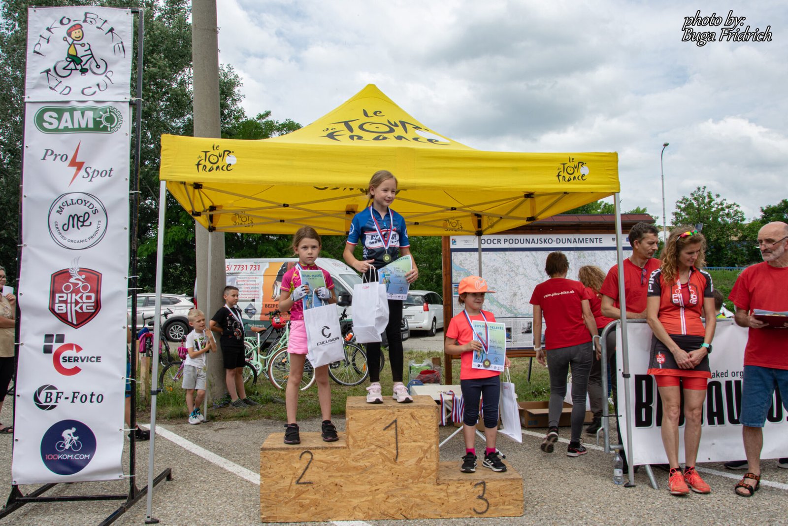 Teraz bola po prvýkrát aj špeciálna kategória pre deti so zdravotným znevýhodnením. Všetci cyklisti úspešne dorazili do cieľa a získali medailu a pamätný list. Každý dostal aj malý darčekový balíček, za ktorý veľmi ďakujeme našim sponzorom. Hoci víťazom je každý, kto dorazil do cieľa, na stupne víťazov sa mohli postaviť prví traja cyklisti v každej vekovej kategórii. Dokonca dostali špeciálne medaily a certifikáty. Kým organizátori pripravili vyhlásenie výsledkov a tombolu, väčšina detí využila postavenú trampolínu a skákací hrad.