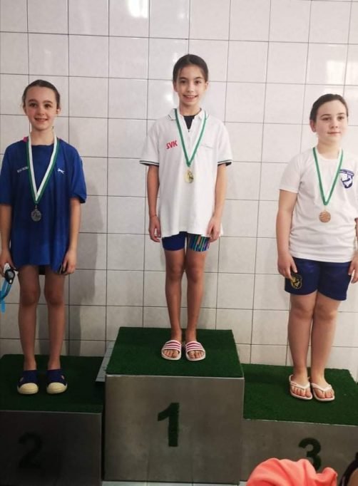 Emma Schmelhaus – štartovala v kategórií mladších žiačok. Dobrú formu potvrdila pred Majstrovstvami Slovenska, ktoré sa budú konať v Čilistove 01.-03.2022. Zo siedmych štartov až päťkrát prekonala svoje osobné rekordy: 50m prsia 1. miesto, 100m prsia 2.miesto, 200m prsia 2.miesto, 100m motýlik 4. miesto, 200m motýlik 4.miesto, 200m polohové preteky 4. miesto, 400m polohové preteky 3. miesto.