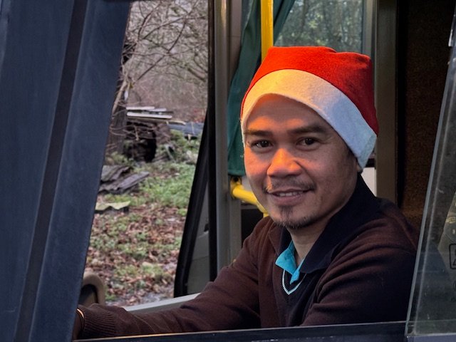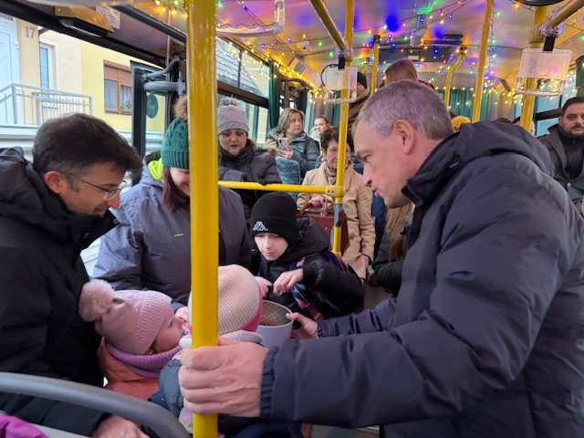 Na Mikuláša vyrazil z Hadoviec Mikulášsky mestský autobus s novým filipínskym vodičom. Okrem slávnostnej výzdoby autobusu vítal cestujúcich – do školy a do práce – čokoládou primátor mesta Béla Keszegh.