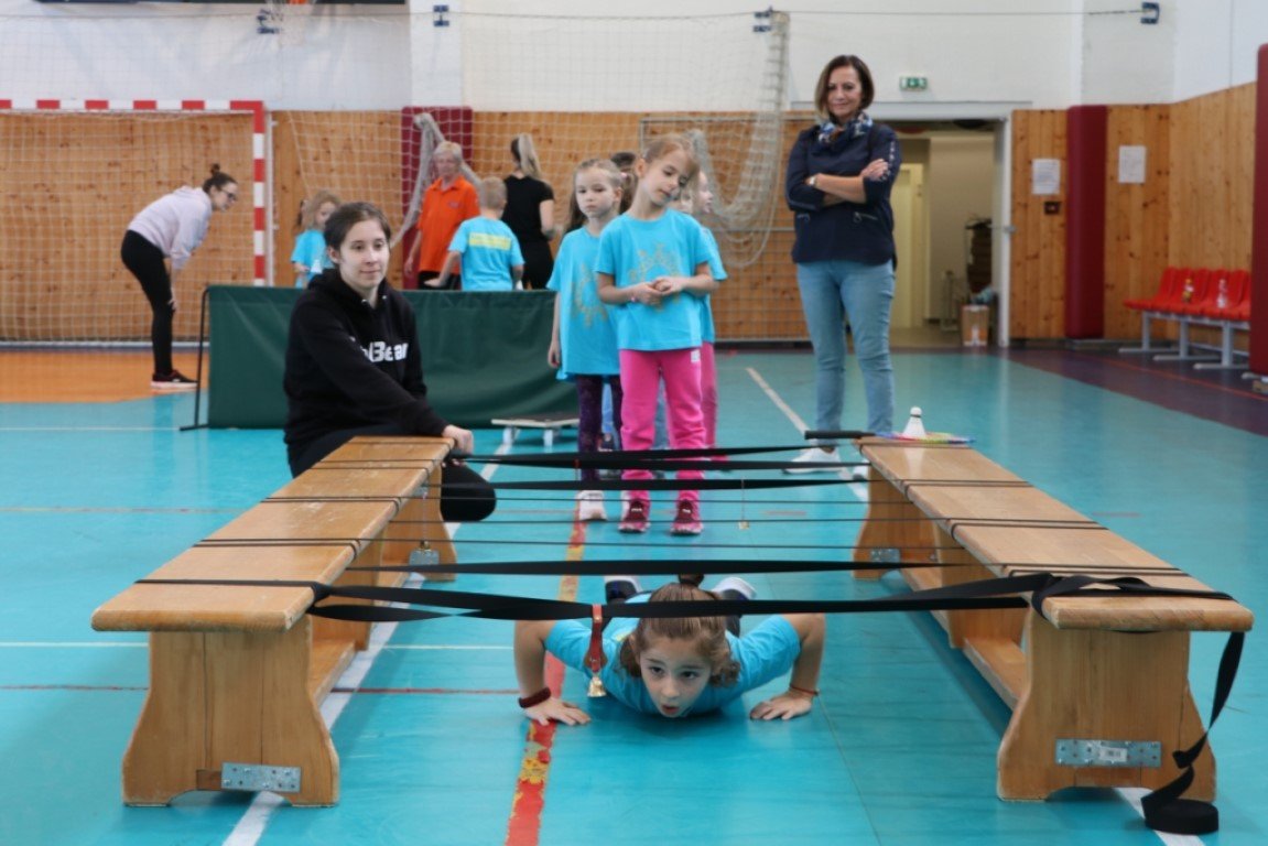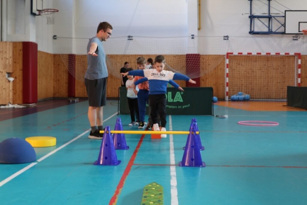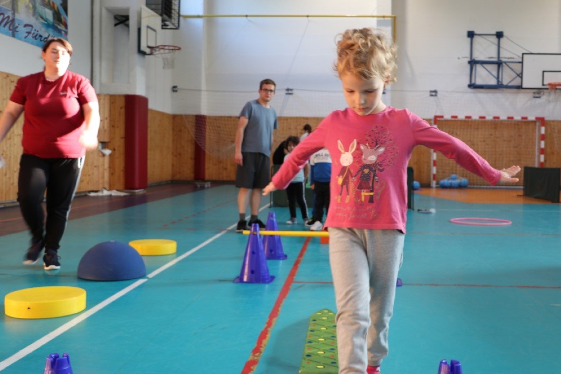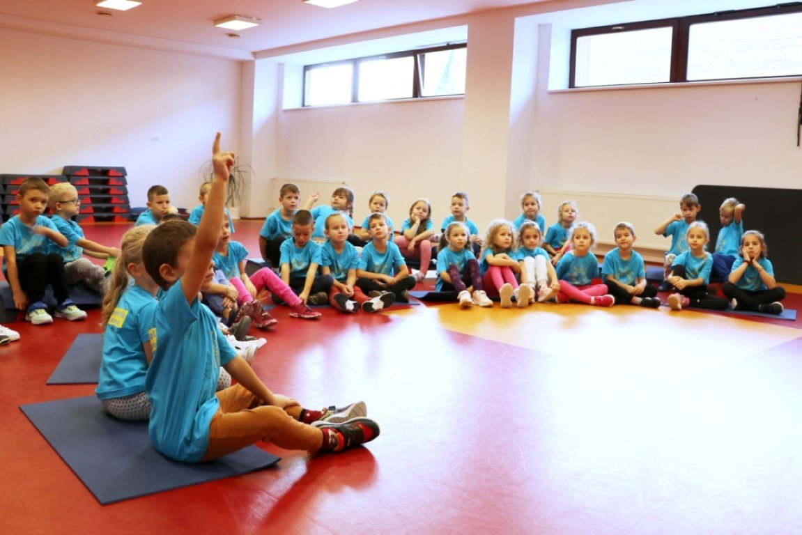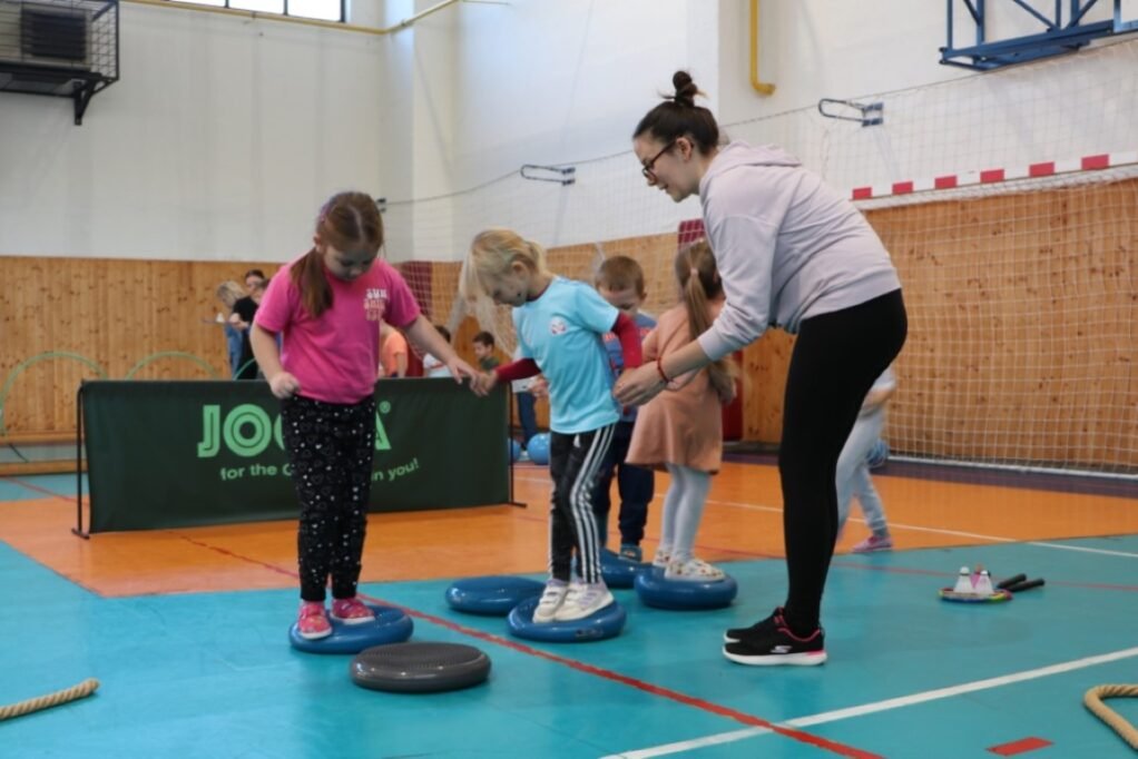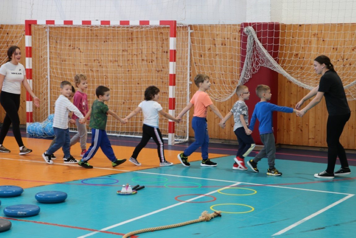 Beata Dobai z Katedry predškolskej a elementárnej pedagogiky si so svojimi študentmi pre deti pripravili pohybové hry a zážitkové aktivity zamerané na zdravý životný štýl a spoločné cvičenie s hudbou. Študenti sa deťom venovali v menších skupinách a postupne ich previedli všetkými pohybovými aktivitami, ktoré boli pre škôlkarov pripravené.