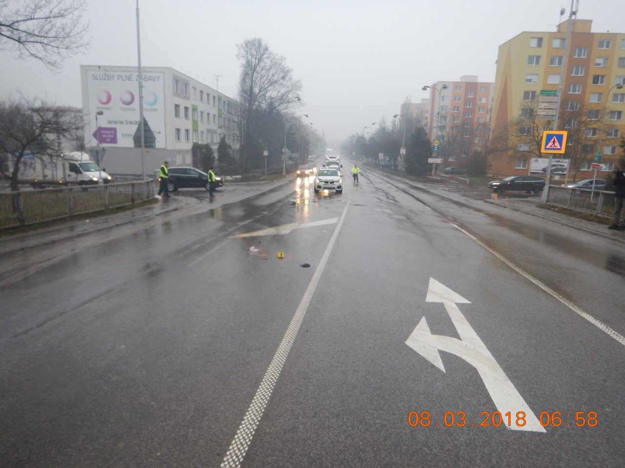 K dopravnej nehode došlo krátko po šiestej hodine ráno na Rákocziho ulici pred Vážskym mostom, dňa 8.3.2018.