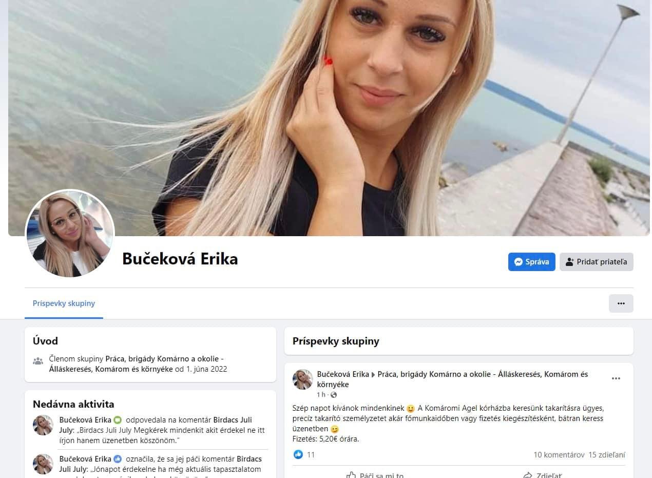 Po menšej investigatíve sme tiež zistili, že facebookový profil pod menom Bučeková Erika ponúka prácu aj v mene iných firiem. Na rovnaký problém ako nemocnica v Komárne, poukazuje aj Jadranská zmrzlina v Poprade.