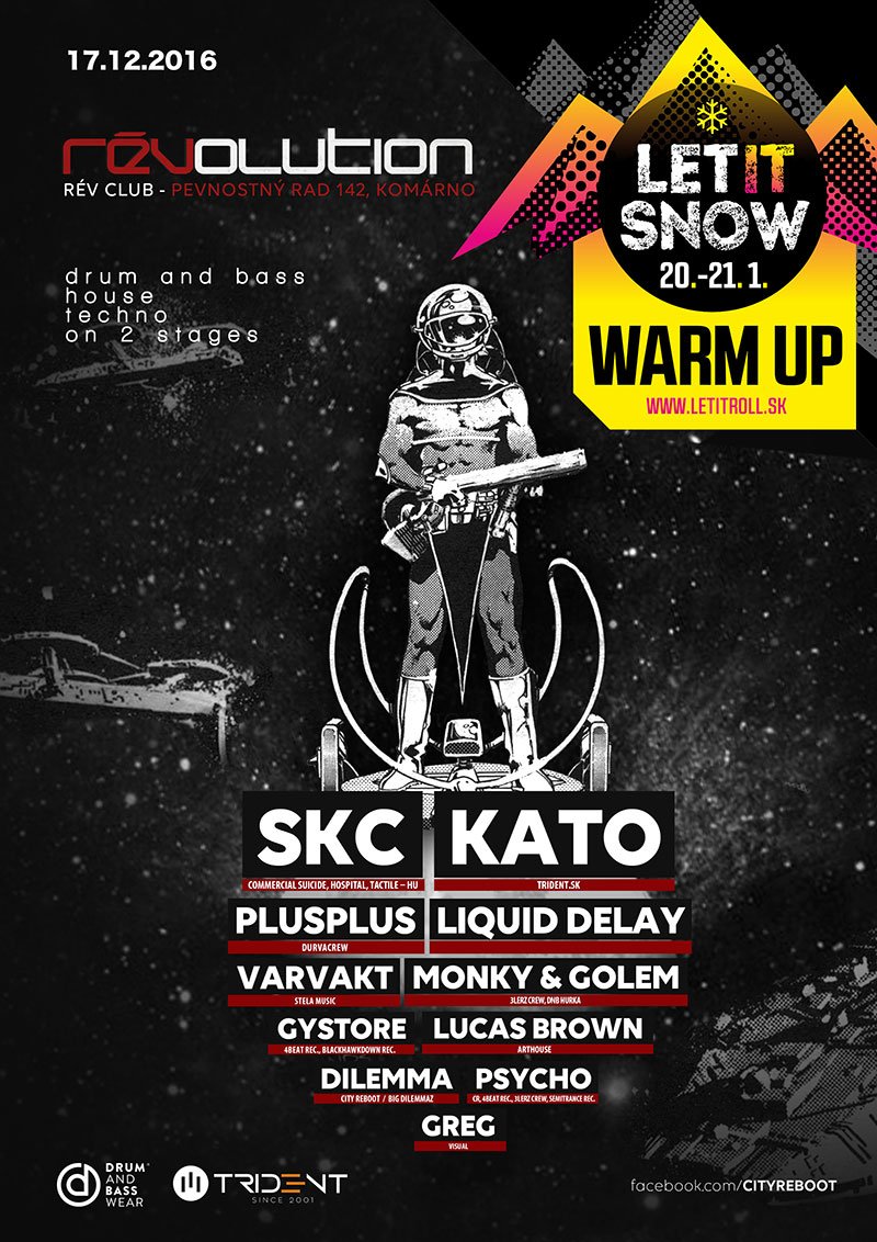 Kto sa trochu len pohybuje na slovenskej drum and bassovej scéne, asi meno KATO nie je mu neznáme. Vo svojich setoch úžasne kombinuje tracky od liquidu cez jungle až po rolujúce neuráče – je to ozajstný showman. Kato je šéfom najdôležitejšieho dnb tímu na Slovensku, s ktorým organizuje najväčšie dnb festivaly u nás. Aj táto akcia bude oficiálnym warm upom na Let It Snow festival, tu na mieste si môžu záujemcovia zakúpiť zvýhodnené lístky na LIS.