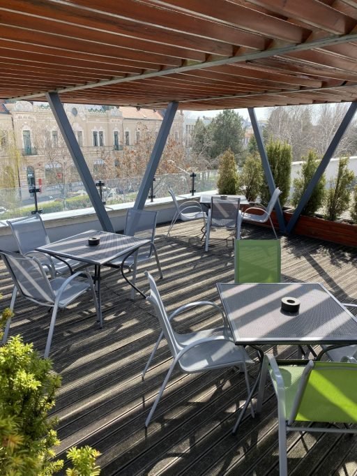 Kancelárska budova má tiež spoločnú kuchyňu s kávovarom, mikrovlnnou rúrou a rýchlovarnou kanvicou. Útulná terasa je ideálnym miestom pre obchodné rokovania, menší oddych medzi dvoma úlohami alebo dokonca na obed.