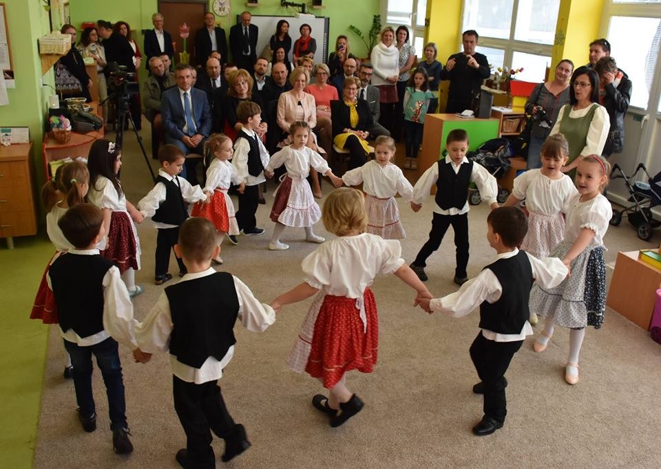 Pedagógovia spolu s deťmi na záver prekvapili milým kultúrnym programom a nasledovalo slávnostné prestrihnutie pásky.