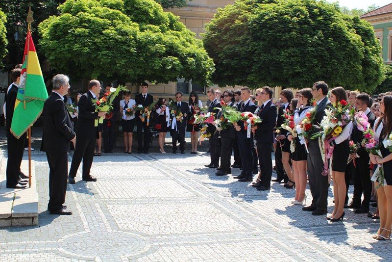 20. mája 2016 v Gymnáziu Hansa Selyeho v Komárne sa lúčilo so školou 123 študentov. Je nám cťou, že každý rok môžeme privítať medzi nami tento krásny deň nielen rodičov, príbuzných, ale aj vzácnych hostí. Tento rok naše pozvanie prijali: Péter Rudolf, divadelný umelec z Budapešti, PhDr. Imrich Knirs, zástupca primátora mesta Komárno, MUDr. Szilárd Ipóth, syn bývalého riaditeľa našej školy a zároveň zriaďovateľa ceny Ipóth, Ing. Árpád Szabó, člen Nadácie biskupa Királya, Ing. Viktor Olláry, člen Rotary clubu, Ing. István Langschadl, predseda Združenia absolventov a pedagógov maďarského gymnázia v Komárne.