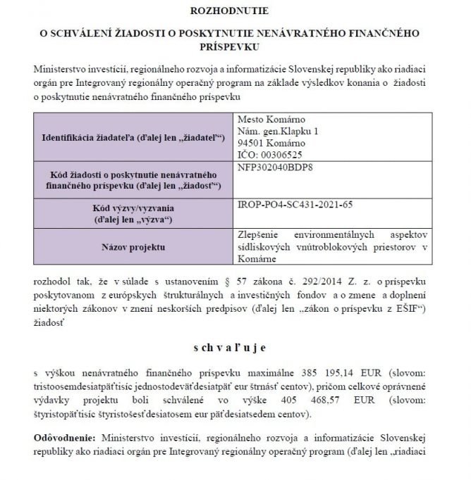 Siedme sídlisko v Komárne sa dočká revitalizácie za 405-tisíc eur