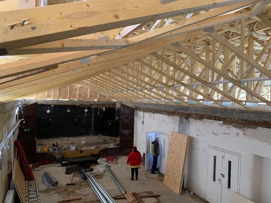 Strešná konštrukcia už bola obnovená a prebiehajú ďalšie práce, väčšinu z nich vykonáva občianske združenie ÉS?! Színház.
